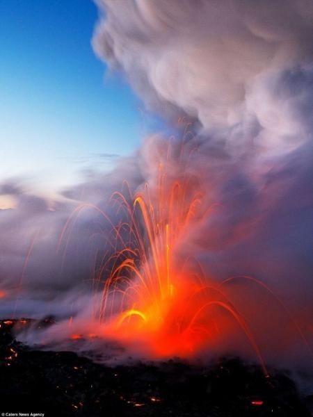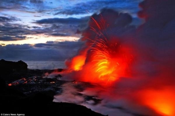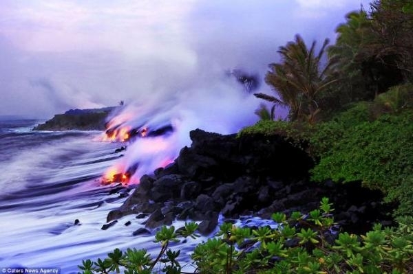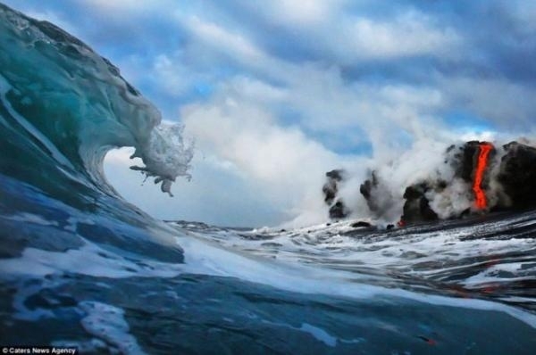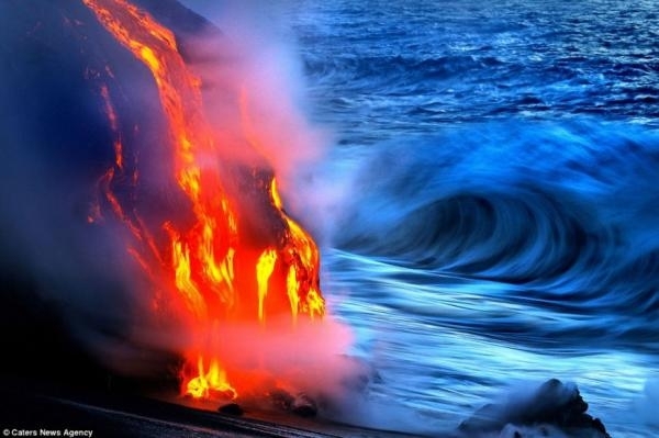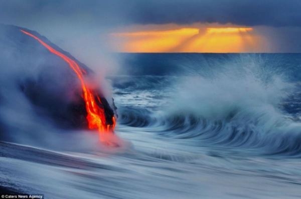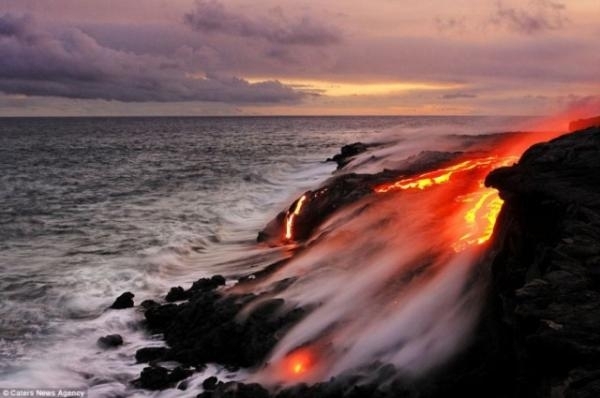 سنقدم لكم اليوم مجموعة صور مدهشة لحمم بركانية ملتهبة تزحف إلى مياه البحر قبالة سهول هاواي. ربما تكون أول مرة ترى فيها الحمم البركانية المنصهرة تندمج و تمتزج مع مياه البحر .