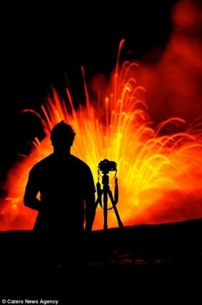 أمضى نيك و كالي عدة أيام أقاموا و عسكروا بها على حافة جبل بركاني لإلتقاط لقطات مميزة و الخاصة بهم باللحظة المناسبة .