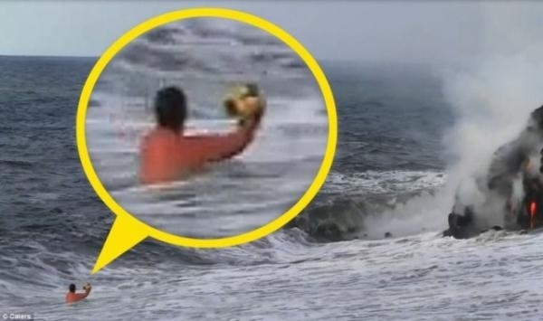 مصوِّرون شجعان يخاطرون بحياتهم لإلتقاط صور مدهشة لحمم بركانية تزحف إلى المياه في هاواي