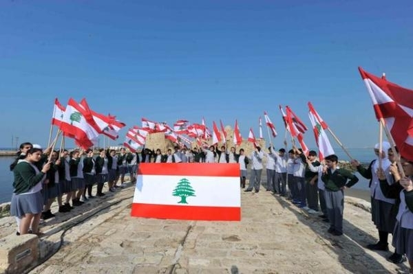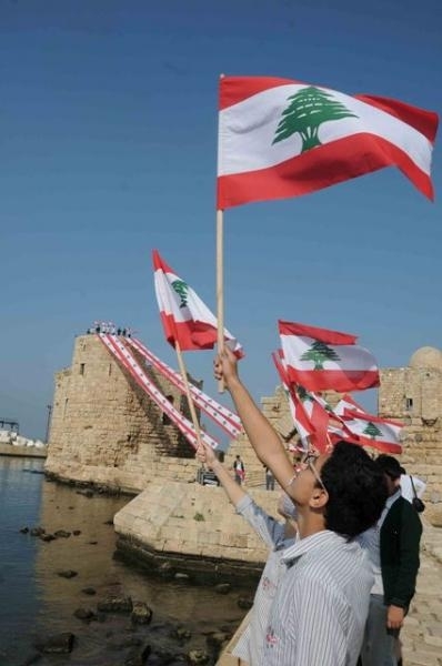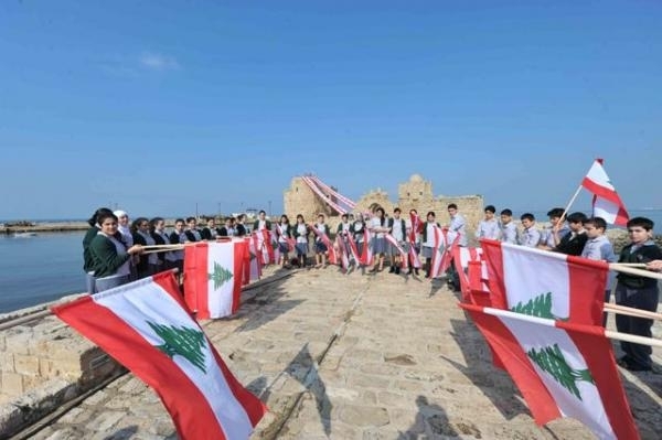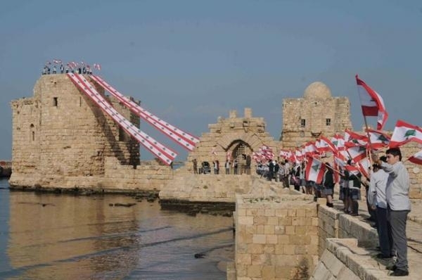 تلامذة صيدا يزينون قلعتها البحرية والحريري اطلقت حملة توقيع على العلم اللبناني :
