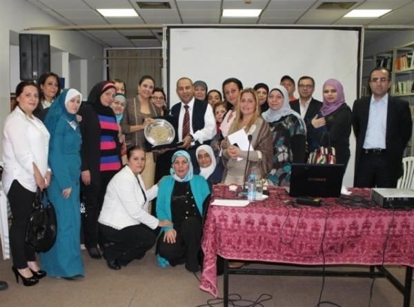 وفي ختام الندوة قدمت السيدة إيمان سعد باسم الهيئة النسائية الشعبية درعاً تذكارياً للأستاذ جورج حايك.