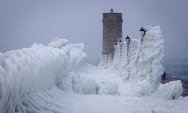 لحظة انهيار ثلج متراكم على سطح أحد المساجد على المارّة في ولاية "ريزا" شمالي البلاد