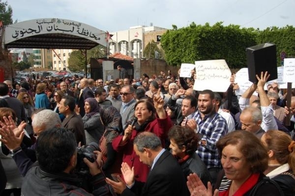 انطلقت من نقابة المعلمين فرع الجنوب- صيدا تظاهرة ضخمة لمعلمي المدارس الخاصة متوجهة نحو السراي الحكومي تقدمها أمين عام نقابة المعلمين في لبنان وليد جرادي ورئيسة فرع الجنوب زينا حجازي ومجلس الفرع وحشد من المعلمين والتحمت عند مدخل سراي صيدا بحشد من معلمي المدارس الرسمية وموظفي الإدارة وكانت كلمة لامين عان نقابة المعلمين في لبنان وليد جرادي جاء فيها:من هنا نطلقها تحية إلى جميع معلمي مدارس صيدا الخاصة لوقفتهم مع نقابتهم وتاليا مع حقهم في سلسلة الرتب والرواتب. تحية إلى جميع القوى التي وقفت معنا وساهمت في نجاح الإضراب.الإضراب حق لكم كفله الدستور والقانون فلا تفرطوا بهذا الحق. حريصون كل الحرص على مؤسساتنا التربوية وعلى طلابنا ولن نلجأ إلى إقفال أي مدرسة خاصة معلموها غير ملتزمين بالإضراب فهذا ليس من شيمنا. بدأت إحدى المؤسسات العريقة بفرز معلميها في خطوة ارتجالية وغير مدروسة مهددة الجدد منهم بإنهاء عقودهم بمحاولة فاشلة معهم لضرب الإضراب وشق الصف في حال التزموا الاضراب.أما عن الحكومة ورئيسها فقد دخلت موسوعة غينيس في إطلاق الوعود تلو الوعود والتنصل منهاولن أقول أكثر من ذلك وآخر البدع الاستمرار في دراسة مصادر التمويل على نار هادئة وكأن سنة لا تكفي لذلك. والأعجب من ذلك أنها لن تحيل السلسلة تحت ضغط الإضراب وكأن الإضراب عمره سنة.مستمرون في الإضراب والتصعيد حتى إحالة السلسلة إلى المجلس النيابي دون المساس بحقوق المعلمين والمتعاقدين والمتقاعدين واشدد على المتقاعدين .القرار قراركم قرار المعلمين فلا تسمحوا لأحد أن يصادر قراركم.