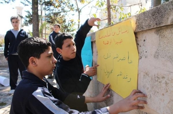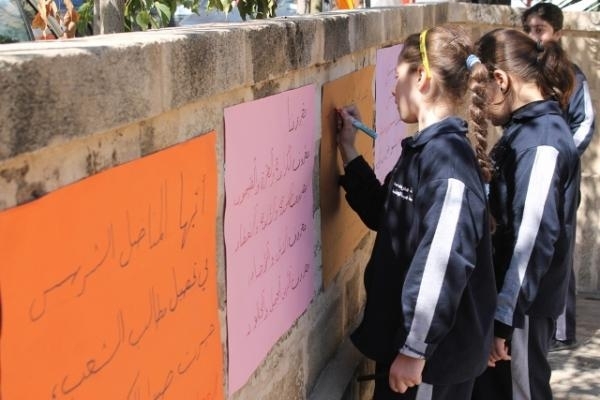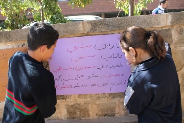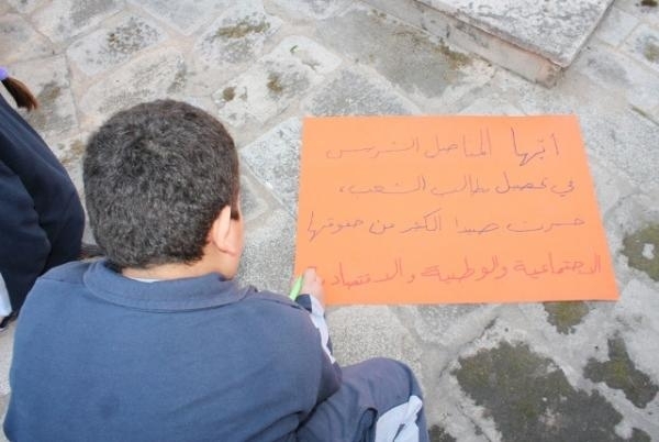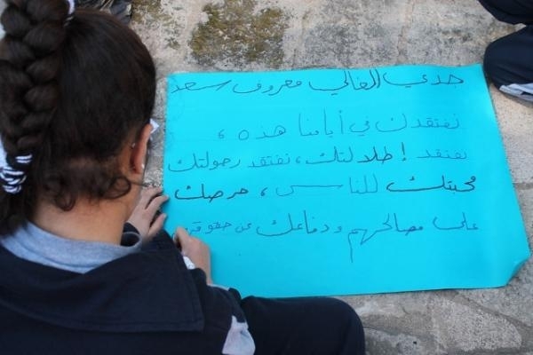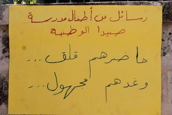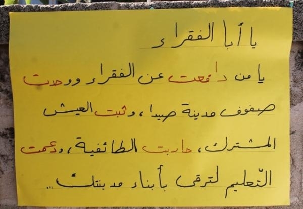 أطفال مدرسة صيدا الوطنية الذين حضروا إلى النصب التذكاري برفقة المعلمين بارعة بوجي وناصر صوبرة، خطوا بأناملهم البريئة عبارات تستذكر الشهيد معروف سعد ، وتطالب بتحقيق العدالة الاجتماعية، وتعبر عن التمسك بالسلم الأهلي والعيش الوطني الواحد الذي لطالما عمل الشهيد معروف سعد على تحقيقه.