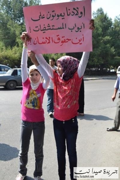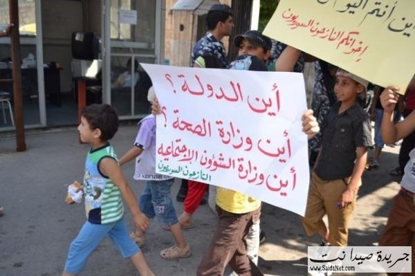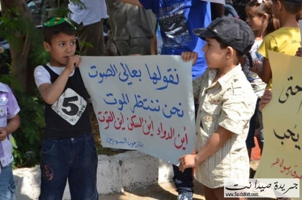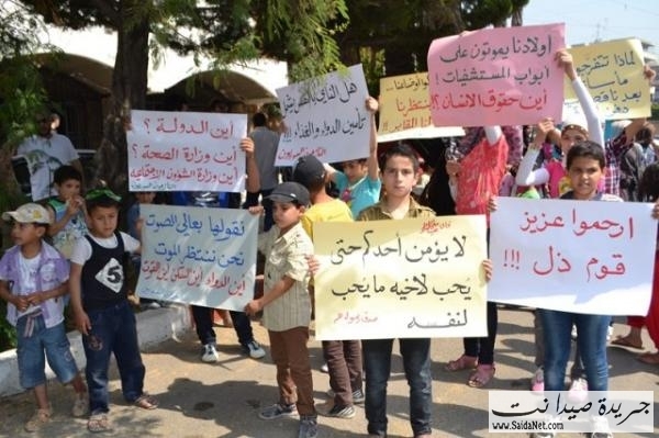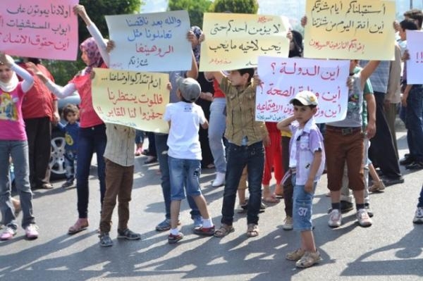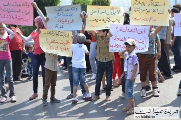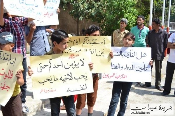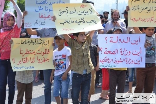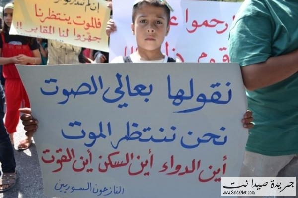 تظاهر العشرات من الجالية السورية النازحة جراء القصف المتواجد في سوريا مطالبين بتحميل الدولة اللبنانية تأمين المساعدات والرعاية الصحية لأن أوضاعهم أصبحت مزرية