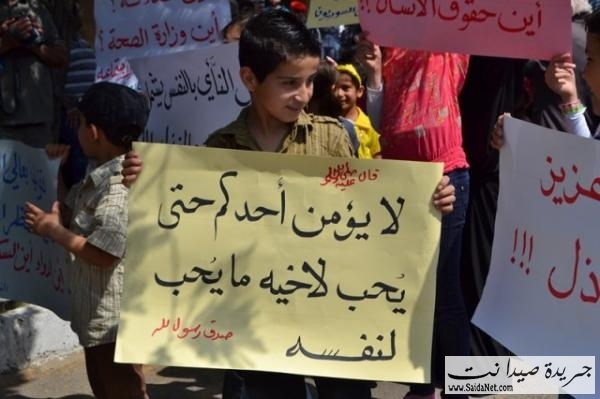 وشارك في الاعتصام السيد كامل كزبر مسؤول شبكة الجمعية الأهلية وطالب بدوره المؤسسات الدولية والدولة اللبنانية أن تتحمل مسؤولياتها تجاه السوريين مشيرا أن هناك حالات أمراض أصبحت تتفشى بين تجمعات السوريين وخصوصا أمراض الحصبة والقمل ملفتا أنه ليس بالإمكان للمستوصفات والمستشفيات في صيدا القدرة في تحميل نفقات العلاج