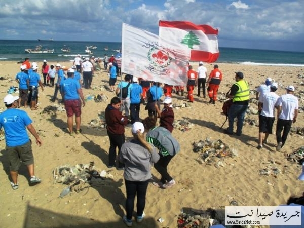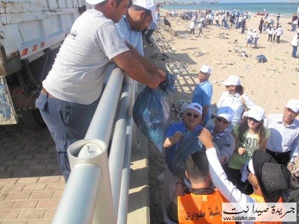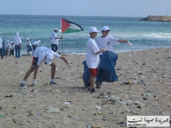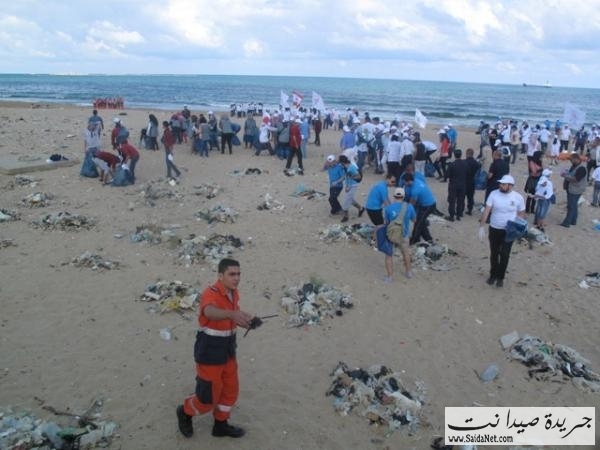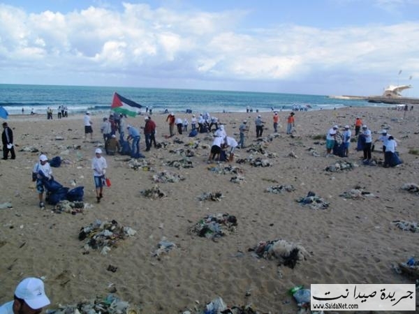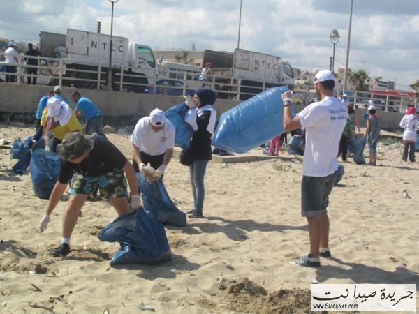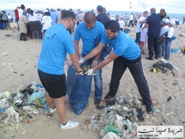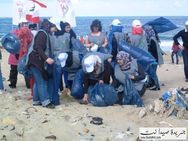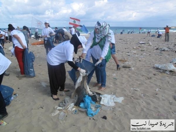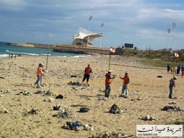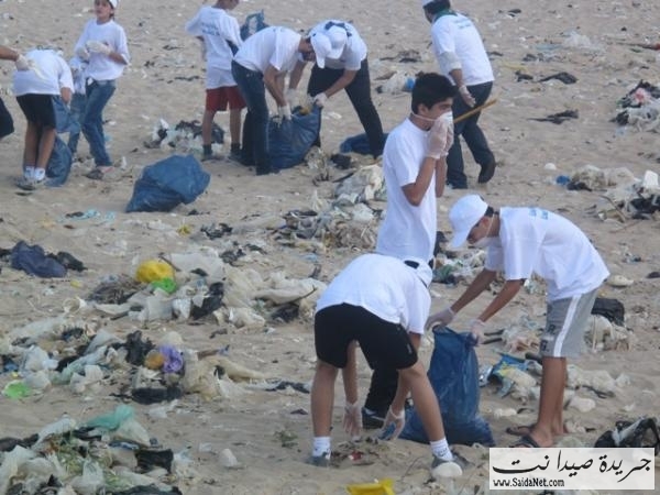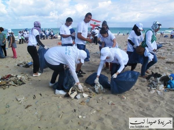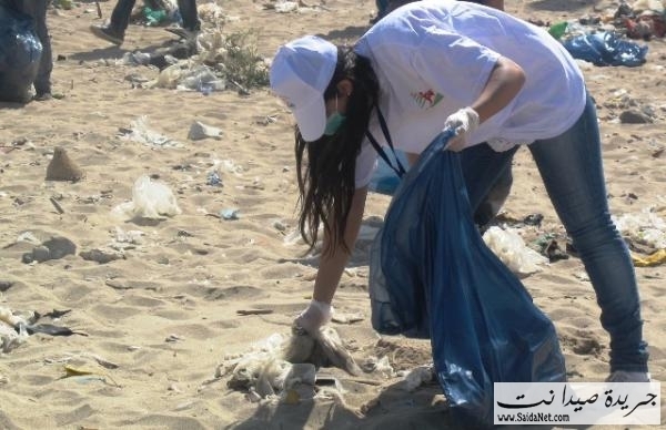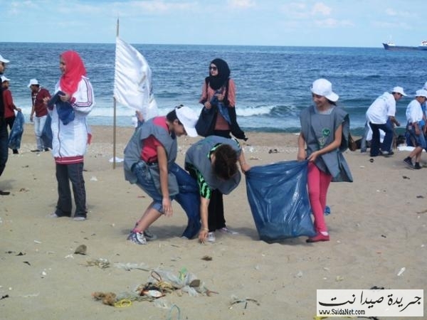 صور حملة تنظيف شاطئ مدينة صيدا من قبل الشباب والصبايا