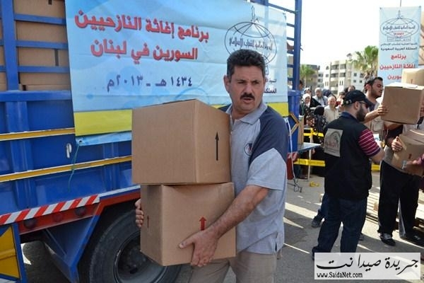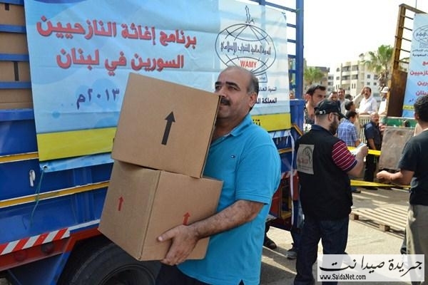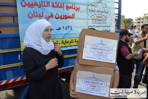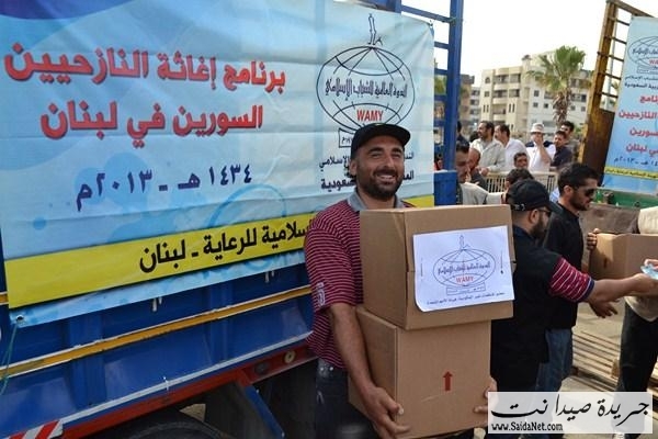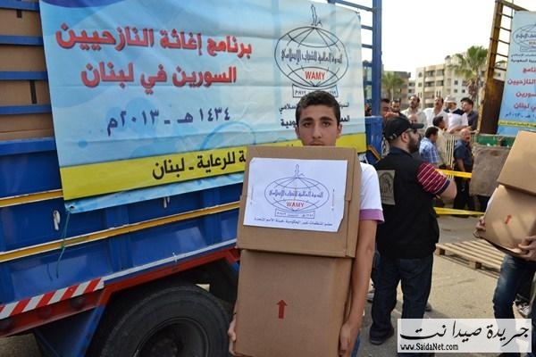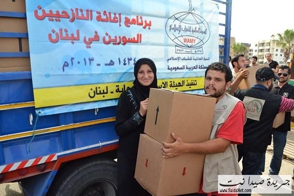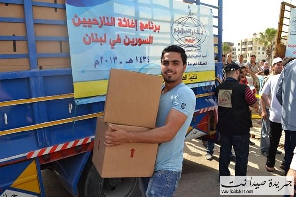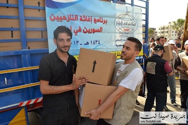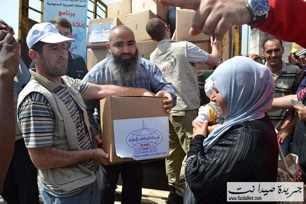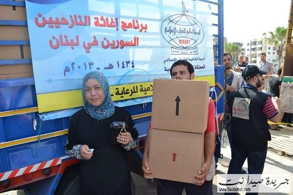 ففي ملعب صيدا البلدي وبحضور قاضي صيدا الشرعي الشيخ محمد أبو زيد، ورئيس اتحاد المؤسسات الإغاثية في صيدا والجنوبالأستاذ كامل كزبر، المدير التنفيذي للهيئة الإسلامية للرعاية الأستاذ مطاع مجذوب وأعضاء الاتحادقامت الهيئة الإسلامية للرعاية بتوزيع 1800 وحدة غذائية و وحدات نظافة لـ 900 عائلة سورية نازحة في مدينة صيدا والجوار مقدمة من الندوة العالمية للشباب الإسلامي –المملكة العربية السعوديةلتكون يدا متواضعة تساهم في تخفيف بعض معاناتهم وتسد جزءاً من حاجاتهم.