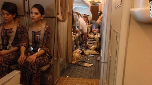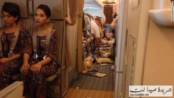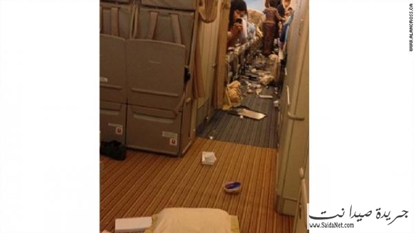 بالصور..تطاير ركاب وفوضى بطائرة بسبب مطبات هوائية