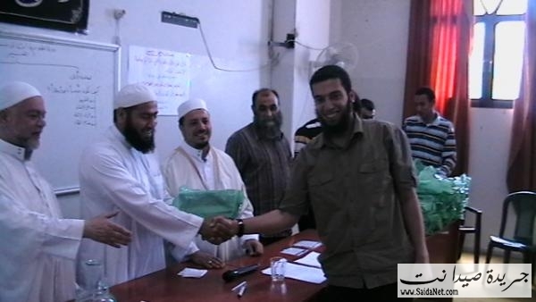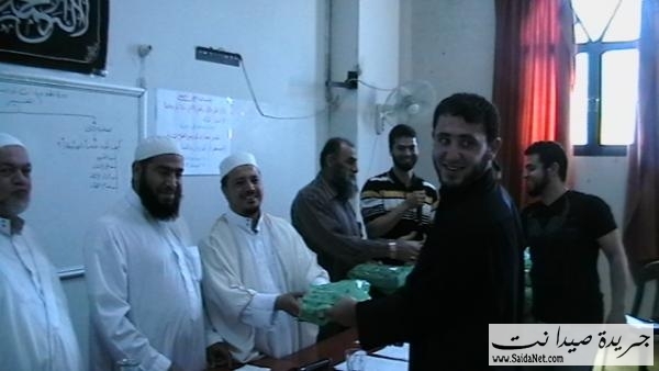 وفي نهاية الدورة تم تكريم الأخوة المشاركين في الدورة بحضور الشيخ الدكتور عبدالله حلاق والشيخ حسن دياب والشيخ ابو ضياء والأخ ابو محمد خالد ، حيث ألقى الشيخ عبد الله كلمة شكر فيها القائمين على الدورة والمشاركين فيها وحثهم على مواصلة طريق البناء والدعوة والإقتداء بنماذج العلماء العاملين كالشيخ القسام من أجل إعادة العزة لأمتنا .