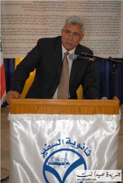 واضاف: انطلاقاً ممّا تقدّم ومن قناعتي الرّاسخة بضرورة الحفاظ على البيئة، فقد كرّستُ العمل التّربويّ ليكونَ في خدمة البيئة وحمايتِها، وإذا كانت مؤسّستُنا قد اختيرت هذا العام كمدرسٍة نموذجيّةٍ لتطبيق سياسة الحفاظ على البيئة، فإنّني لا أعتبرُ ذلك سوى محطّةٍ على الطّريق الطّويل الّذي أسعى إلى سلوكِه وصولاً إلى الأهدافِ الكبرى المرتسمةِ في ذهني. وفي هـذا الإطار، وضعْنا للمدرســه خطّةً خمسيّـة تقـوم على الاستغناء عن الطّاقة من مصدرها الحالي واعتماد الطاقه البديلة المتجدده، وترشـيد استخدام المياه، وإعادة تدوير النّفايات واعتمادِ الزّراعة العضويّة.وفي المجالِ الأخير، أي الزّراعةِ العضويّة، أفخرُ بأنّني بدأتُ مشروعاً على المساحةِ المحيطةِ بثانويّة السّفير يعتمدُ الزّراعة الخاليةَ تماماً من أيّة موادّ كيماويّة، وافتتحتُ معرضا لتصريفِ الإنتاجِ في مدينـة صيدا كي يشـعرَ المستهلكُ بالنوعيةِ للزراعات الطبيعيه، والأهمُّ من كلِّ ذلك أنّ هذا المشروع يقوم على إشراكِ الطّلاّب في العمل الزّراعيّ على أن ينالوا مقابلَ ذلك نصيباً من ريع الإنتاج ، وذلك لتحقيق عدّةِ أهدافٍ في الوقتِ نفسِه، منها أن يكونَ الطّالبُ قريباً من الأرض وصديقاً لها، ومنها أن يتحمّل مسؤوليّة العمل فيها فلا يؤذيها، ومنها كذلك أن يثقَ بنفسه وبقدرتهِ على العطاء، ومنها أيضاً أن يكونَ قادراً على البحث عن مصادرَ للدّخْلِ تعودُ عليه بالفائدة. وإنّني أعتبرُ إتاحةَ الفرصةِ أمام الطّلاّبِ للعمل الزّراعيّ الصّديق للبيئة إنجازاً هامّاً، لأنّ هؤلاءِ الطّلاّبَ هم رجالُ الغد الّذين سينمو فيهم حُبّ الأرضِ وحُبّ حمايتها، وهذا مشروعٌ له طابع الدَّيمومةِ في مستقبل الأيّام. وأخيراً، أشكر لكم حضورَكم ومشاركتَكم آملاً أن نكون جميعا، جنـودا عاملين في سبيل حماية هذه الارض وبيئتها. وأن تكونَ حمايةُ البيئة موضعَ اهتمام المجتمع الأهليّ كي ننعمَ فعلاً بأرضٍ خاليةٍ من الأمراض والأوبئه، وببيئةٍ سليمةٍ تحمل الصّحّةَ والسّلامةَ، لنا ولأبنائنا وأحفادِنا من بعدنا.