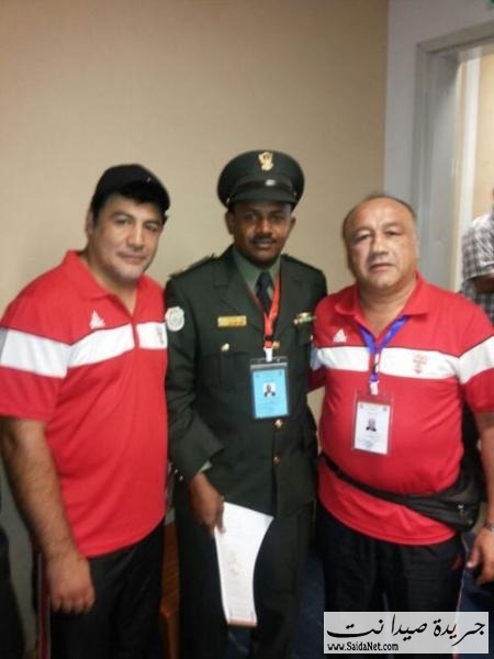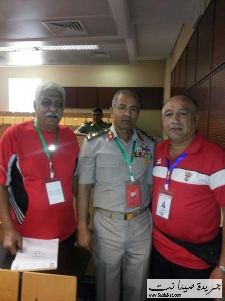 البطولة العربية العسكرية الثانية للملاكمة لبنان من 19 الى 25 -8 -2013 رئيس الجنة العليا المنظمة للبطولة قائد المركز العالي للرياضة العسكرية العميد الركن أسد الهاشم يبارك للمدربين الدولين ثلاثة نجوم آيبا أحمد المصري و مصطفى الزينو و البطل العرب نجد سلوم