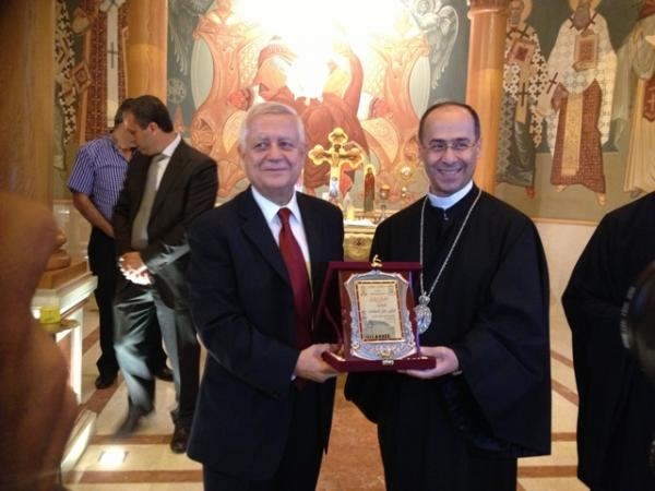 وفي ختام الحفل قدم المطران حداد لمشنتف درعاً تقديرية