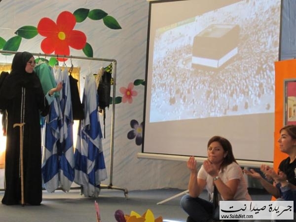 وفي نشاط آخر قدم التلامذة محاكاة مشهدية لمناسك الحج حيث طافوا حول مجسم للكعبة مرددين "لبيك اللهم لبيك ... لبيك لا شريك لك لبيك" .