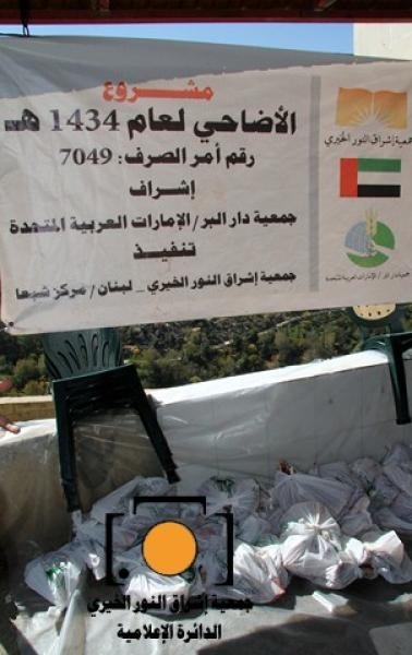 قامت جمعية إشراق النور و كعادتها كل عام بتوزيع الأضاحي في شبعا ، لتكمل رسالتها بأن تكون بريد الخير المضمون للمضّحي و المستفيد، و ما جزائهم إلا دعوة بأن يفرح الله قلوبهم و يوسّع عليهم كما أفرحوا القلوب .