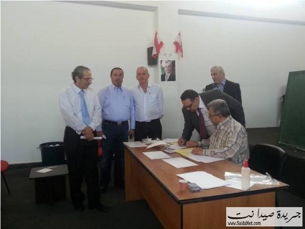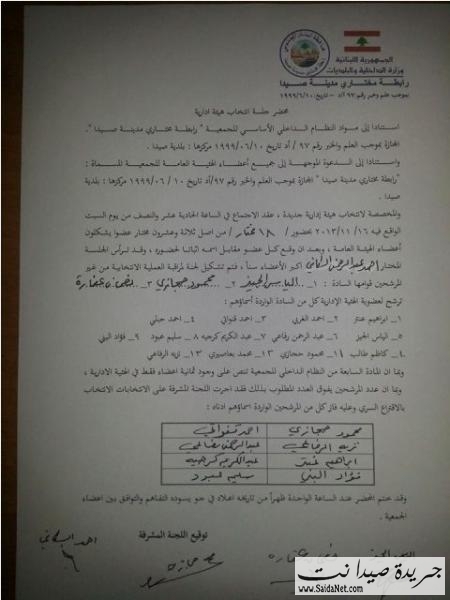 الهيئه الاداريه الجديده لرابطة مختاري مدينة صيدا بعد انتخابها اليوم في صورة تذكاريه في قاعة الرئيس الشهيد رفيق الحريري في سراي صيدا