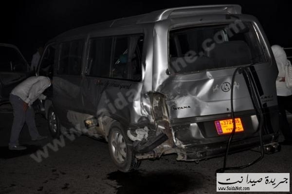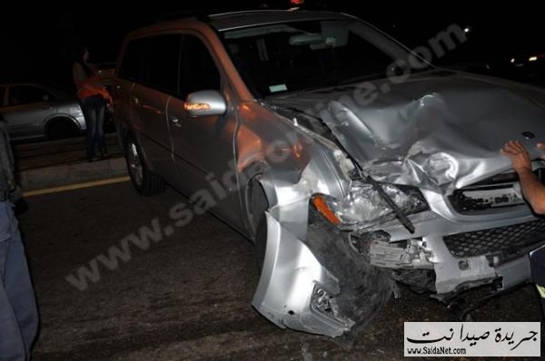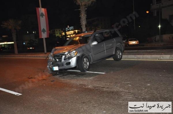 وقع حادث سير قرب مدينة الرئيس رفيق الحريري الرياضية (ملعب صيدا االبلدي) بين جيب مرسيدس ML يحمل الرقم (132222 ز) وفان سانغ يونغ مخصص لنقل الركاب يحمل الرقم (372485 م)، حيث اصطدمت سيارة المرسيدس بالفان من الخلف ما ادى إلى قيام سائق الفان باجتياز الرصيف ليستقر الفان على الجهة اليمنى من الطريق، وقد أدى الحادث إلى إصابة امرأتين من ركاب الفان تم نقلهما إلى مستشفيات صيدا.