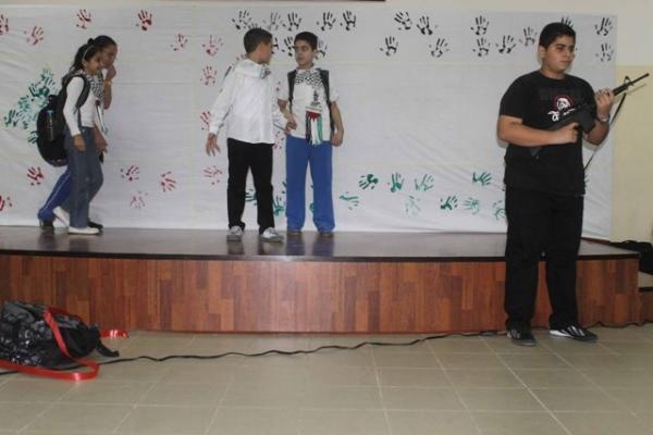 لمناسبة اليوم العالمي للتضامن مع الشعب الفلسطيني الذي يصادف 29 تشرين الثاني من كل عام ، وضمن أنشطة الايام العالمية التي اعتمدتها الشبكة المدرسية لصيدا والجوار ، نفذ تلامذة مدرسة الحاج بهاء الدين الحريري في صيدا وقفة تضامنية مع الطفل الفلسطيني عطا شراكة من رام الله الذي اصيب برصاص جنود الاحتلال الصهيوني وهو يحاول استرجاع حقيبته المدرسية ما تسبب له بشلل دائم وقدم طلاب قسم الدراما مشهدية تعبيرية من وحي المناسبة جسدوا خلالها حكاية الطفل شراكة ومعاناة الاطفال الفلسطينين مع الاحتلال الصهيوني ..