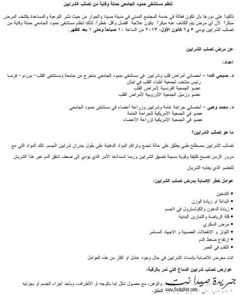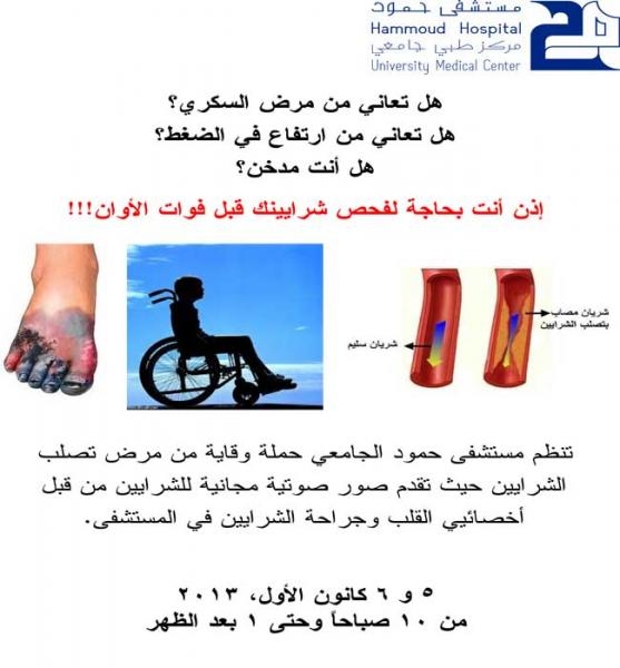 تقيم مستشفى حمود الجامعي حملة وقاية من تصلّب الشرايين