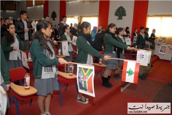 ودّع تلامذة عدد من مدارس عاصمة الجنوب صيدا المناضل والزعيم الأفريقي الراحل نيلسون مانديلا قبل ان يودعه العالم وعلى طريقتهم ، فحضر مانديلا درساً استثنائياً في اليوم الدراسي ( السبت) كونه يختصر في مسيرته الانسانية والنضالية والفكرية دروساً لا تنسى في الحرية والعدالة والدفاع عن حقوق الانسان .