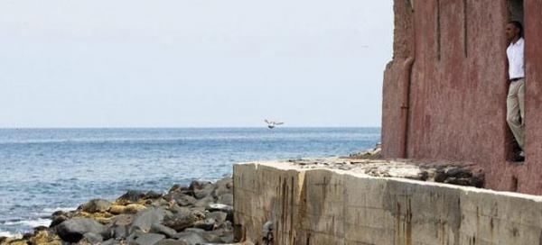 5- السنغال، الرئيس الأميركي باراك أوباما يقف داخل المعقل الأخير للعبيد قبل نقلهم إلى أميركا في نظرة معبرة جدا إلى الأفق.