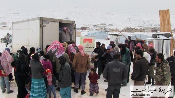 وقد وصلت الأمس القافلة الإغاثية التي تم إيفادها إلى مدينة عرسال وتم توزيع المواد التي فيها على النازحين السوريين في مخيمات اللجوء في البلدة ،