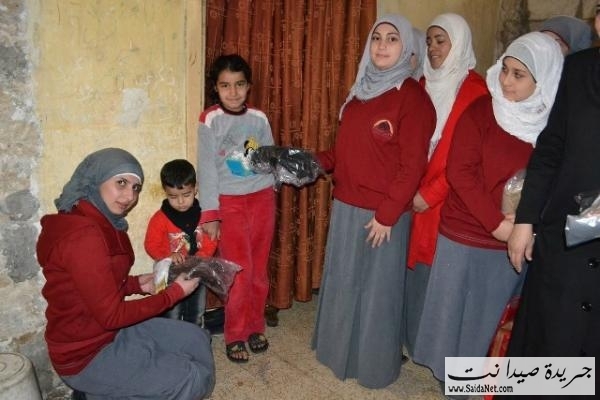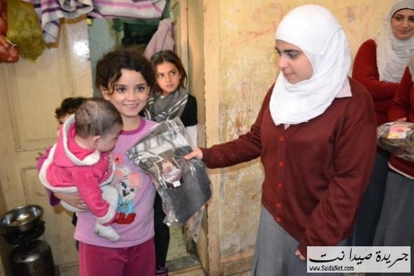 احساساً منهن بالحالة الانسانية التي يعاني منها النازحون السوريون الوافدين إلى لبنان جراء الأزمة المندلعة منذ ثلاث سنوات،الذين يسكنون مع عائلاتهمفي البرد القارص والشتاء المنهمر، قام طالبات مركز الرحمة لخدمة المجتمع بحملة تبرعات للعائلات السورية حيث قمن بجمع ثيابجديدة للاطفال، وقد قام وفد منهن يرافقهن ثلة من المعلمات اضافة الى وفد من الرعاية بتوزيع هذه الثياب على بعض العائلات النازحة.