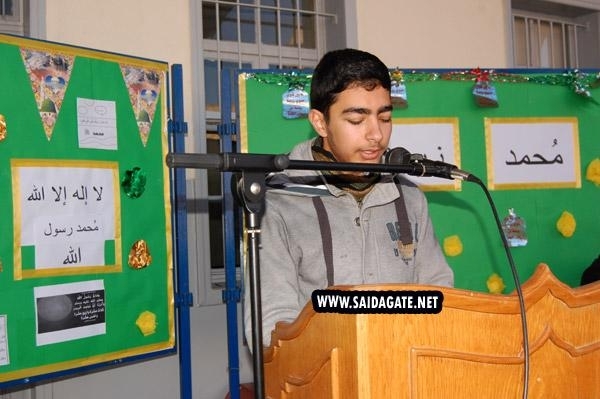 بدأ الاحتفال بتلاوة آية من الذكر الحكيم رتّلها الطالب أحمد باشو من الصّفّ الثانويّ الثالث، ثمَّ ألقى أستاذ التربية الإسلامية الشيخ علي السبع أعين كلمة من وحي المناسبة، ثمَّ ألقت الطالبة رهام حبلي من الصفّ الثانويّ الثاني منظومة وجدانية معبّرة.