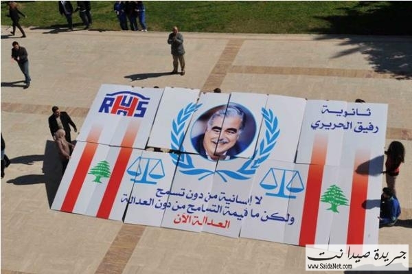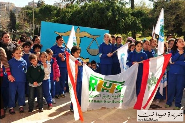 تحت شعار " العدالة الآن " احيا طلاب ثانوية رفيق الحريري في صيدا الذكرى السنوية التاسعة لإستشهاده بسلسلة انشطة شارك فيها افراد الهيئتني الادارية والتعليمية وتوزعت على مختلف اقسام وباحات المدرسة ، وتوجت بمسيرة للطلاب الى خارج حرم المدرسة جابت الشارع المحاذي لها لتعود مجددا اليها . ورفع خلالها الطلاب الأعلام اللبنانية وصور الرئيس الشهيد ولوحة عملاقة تجسد ميزان العدالة. ورسوم عبرت عن مواقف ومحطات من مسيرة الرئيس الشهيد الوطنية والانسانية والتربوية.