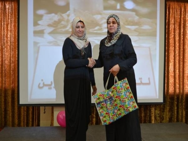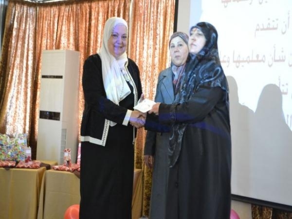 وفي الختام قدمت الطالبة ضحى ابو عرقوب باقة من الورد بإسم الطالبات للسيدة عطوات عربون شكر وتقدير لها.