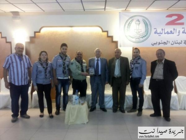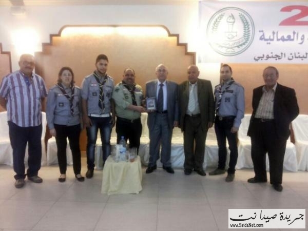 كرمت قيادة مفوضية الجنوب في كشافة لبنان المستقبل قيادة اتحاد نقابات العمال والمستخدمين في صيدا والجنوب بمناسبة الأول من ايار وتقديرا للدور الوطني والانمائي للعمال ، فقدم مفوض الجنوب مصطفى حبلي وعدد من اعضاء المفوضية هدية رمزية الى رئيس الاتحاد عبد اللطيف الترياقي عبارة عن مجسم لمراكب الصيادين وقلعة صيدا البحريه من اشغال الكشافين وذلك بحضور منسق قطاع النقابات العمالية في تيار المستقبل في الجنوب احمد حجازي.