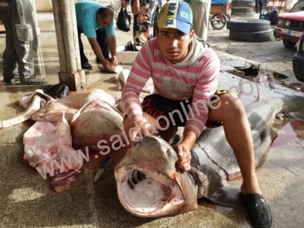 بالصور .. أسماك قرش ضخمة في شباك الصيداوي محمود وهبي