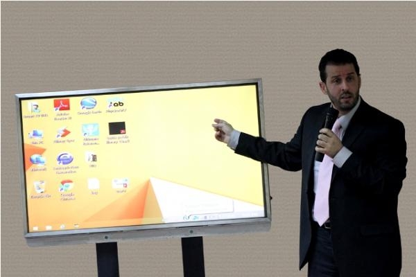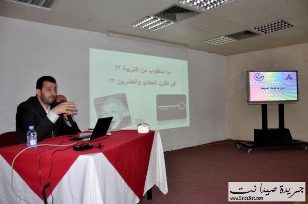 أما في ما يخص معلم العصر فهو مصمم، مبدع، متابع، متواضع، متفهم وفنان... ليخلص إلى النظرية الحديثة في عالم التربية من ان المستقبل شيء نحن نصنعه وليس مكاناً نذهب إليه، موضحاً أن هذا المستقبل الذي ينتظر طلابنا لا أحد يعرفه، ومن هنا يفترض أن ندرب طلابنا التكيف مع كل جديد من وسائل التعليم الحديثة عبر الهاتف الذكي، كما لا بد من توفير وسائل إيضاح تتناسب مع هذا العصر كالتلفاز الذكي الذي كان حاضراً على المنصة وأجرى عليه المحاضر تطبيقاً أذهل الجميع فيما علا التصفيق لدى إعلان الأستاذ كزبر أن هذا الجهاز تم تصنيعه في المدرسة...