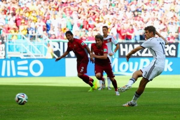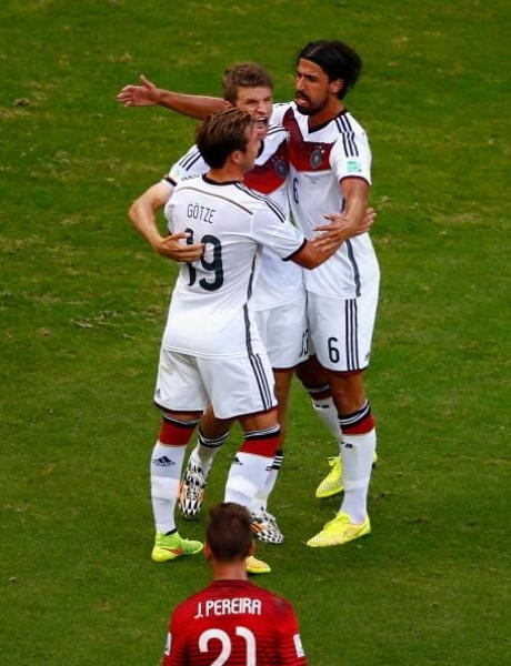 وأحرز توماس مولر الهدف الأول من ركلة جزاء في الدقيقة 12 وكذلك الهدفين الثالث والرابع في الوقت المحتسب بدل الضائع للشوط الأول والدقيقة 78 وأضاف المدافع ماتس هوملز الهدف الثاني في الدقيقة 32. وأصبح رصيد المانيا ثلاث نقاط في صدارة المجموعة التي تضم أيضا منتخبي غانا والولايات المتحدة بينما انفرد مولر بصدارة الهدافين.