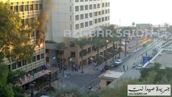 بالفديو اثار القصف في مبنى جمعية المقاصد الخيرية الإسلامية في صيدا