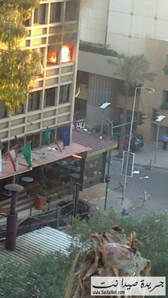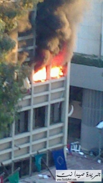 بالفديو اثار القصف في مبنى جمعية المقاصد الخيرية الإسلامية في صيدا