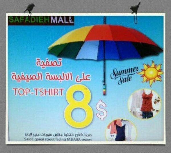 اكبر وأرخص عرض على تصفية الملابس الصيفية في صيدا .. عند صفدية مول..
