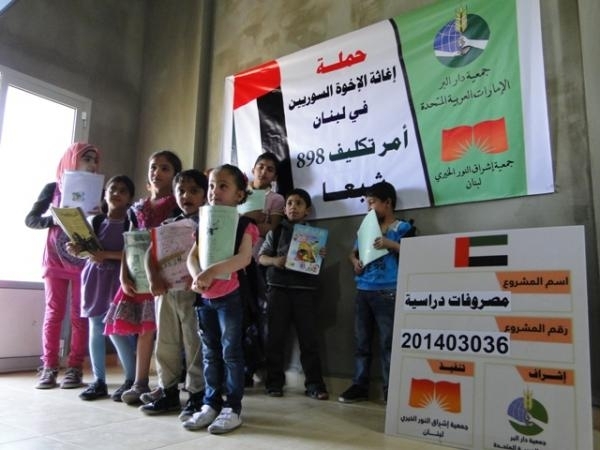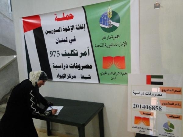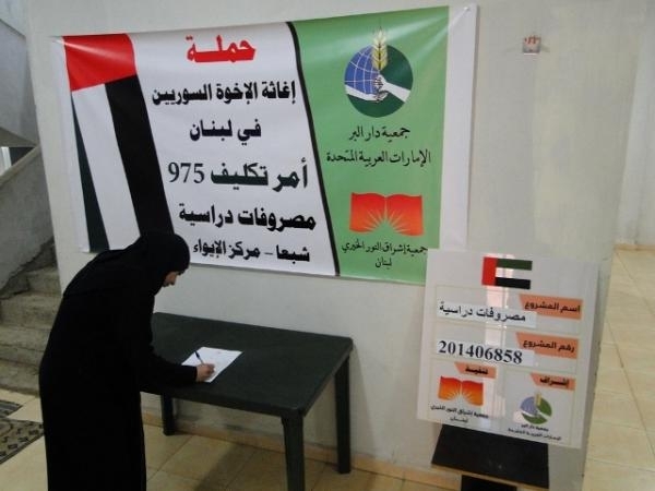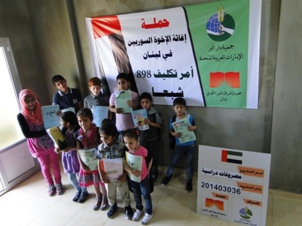 كما تم تقديم مصروفات دراسية ضمن مشروع المساعدات التعليمية ل 14 طالب من النازحين السوريين في شبعا بدعم من جمعية دار البر في الإمارات العربية المتحدة ب 2240000 ل.ل.