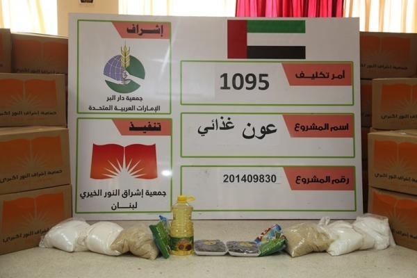 وزعت هيئة الإغاثة والمساعدات الطارئة في جمعية إشراق النور الخيري _ مركز صيدا حصص عون إغاثي غذائي ضمن حملتها المستمرة لإغاثة الأخوة السوريين بتعاون مع جمعية دار البر في الإمارات العربية المتحدة.