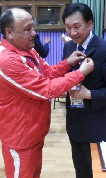 وتقدم منتخب لبنان في الملاكمة ضمن البعثة مدير المنتخب ورئيس لجنة المدربين المدرب الدولي" 3 ستار آيبا " البطل احمد المصري .