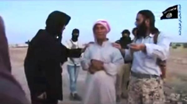 ثم يسأل الرجل المرأة "هل أنت راضية بحد الله؟" فتجيب نعم، ولكن “بس يسامحني” مشيرة إلى شخص يدعي أنه أباها، ويتمنع الأب ويرفض مسامحتها ويقول لها: "لست أباك" فيطالبه عناصر "داعش" بأن يسامحها ويقولون له "ستموت بعد قليل"، ليقول لها في النهاية "الله يسامحك".