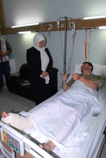 بعد ذلك انتقلت الحريري الى منطقة النبطية حيث عادت مراسل تلفزيون المنار الصحافي الجريح علي شعيب في مستشفى راغب حرب في تول واطمأنت الى حالته الصحية وهنأته بالسلامة وحيت فيه روح الرسالة الإعلامية والواجب الذي كان يؤديه . وروى لها شعيب وقائع المواجهة وكيف اصيب اثناء تغطيته لها.