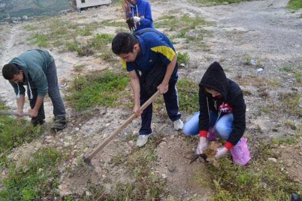 بالتعاون مع بلدية بقسطا وجمعية شعاع البيئة نظم طلاب مدرسة الفنون الإنجيلية في صيدا حملة تشجير في منطقة شرحبيل.