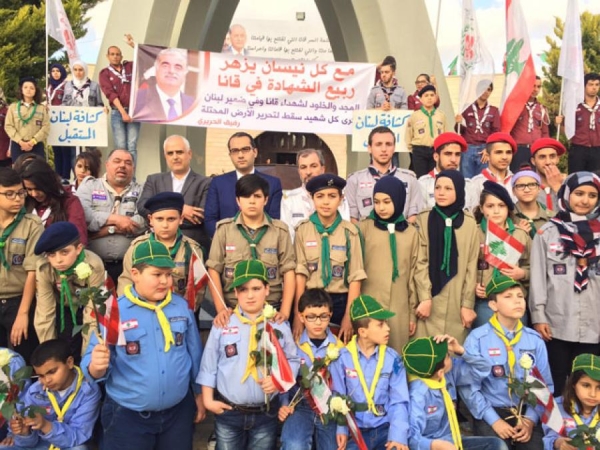 شاركت جمعية كشافة لبنان المستقبل في إحياء الذكرى التاسعة عشرة لمجزرة قانا (في نيسان من العام 1996) وفي المسيرة الكشفية التي نظمتها كشافة الرسالة الاسلامية بالمناسبة في الشارع الرئيسي للبلدة وصولا الى النصب التذكاري الذي تجمع حوله الكشافون حاملين الورود البيضاء والعلم اللبناني تحية لشهداء الوطن في قانا الجليل حيث قام وفد كشافة لبنان المستقبل بوضع اكليل من الزهر على اضرحة الشهداء ولافتة تحمل صورة للرئيس الشهيد رفيق الحريري الى جانب كلمات له قالها على اثر المجزرة " مع كل نيسان يزهر ربيع الشهداء في قانا المجد والخلود لشهداء قانا الأبرار وفي ضمير لبنان ذكرى كل شهيد سقط لتحرير الأرض المحتلة". ناقلين الى من التقوهم من اهالي الشهداء تحيات وتعازي رئيسة الجمعية النائب بهية الحريري .وبعدها وضع الورود البيضاء والعلم اللبناني على اضرحة الشهداء قرأوا الفاتحة لأرواحهم الطاهرة.