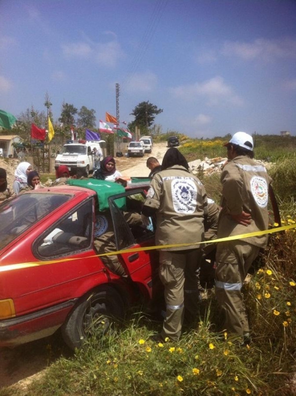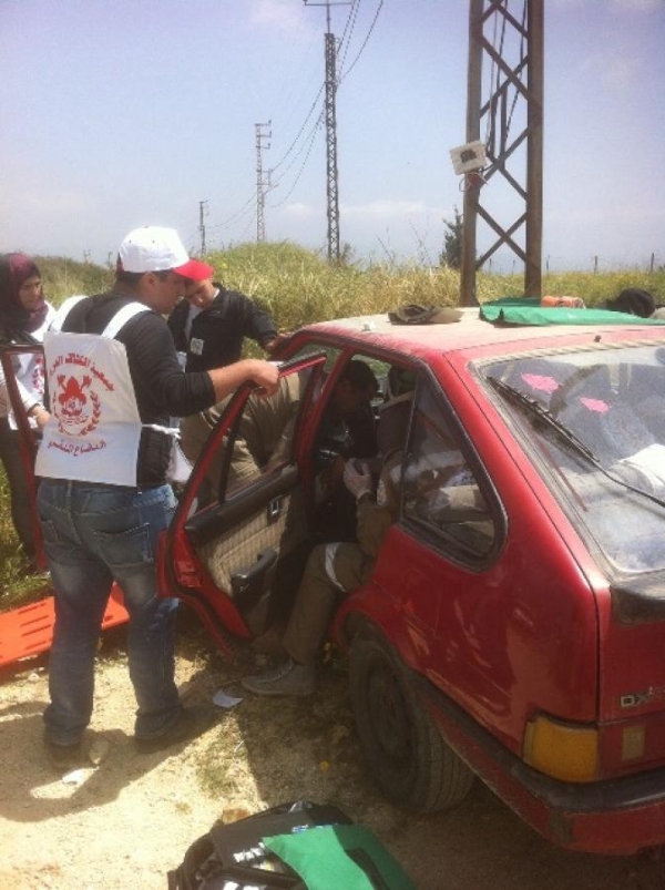 المرحلة الأولى : حاكت التدريب على إنقاذ ركاب سيارة اصطدمت بعامود الكهرباء وقد احتجز ركاب السيارة بداخلها بعد ان شبت النيران في المحرك، على الفور تحرك المسعفون ، فمنهم من قام بإخماد النيران ومنهم من قام بإخراج الركاب المحتجزين من السيارة وفق الأصول العلمية والطبية والتي لا تسبب للمصاب اي أضرار أخرى، وقام المسعفون بتقديم الإسعافات الأولية للمصابين ونقل الحالات الحرجة الى المستشفيات
