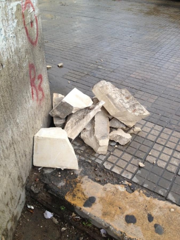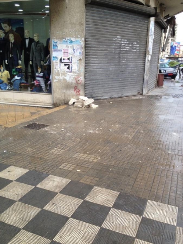 وفي التفاصيل عند ظهر اليوم الخميس 23 - 4 -2015، أثناء مرور العائلة " الأم وطفلين " واثناء وقووف عدد من سائقي التاكسي ، سقط حجرين من نوع صخري كبير من الشرفة الثانية من بناية البربير من الناحية الجنوبية .