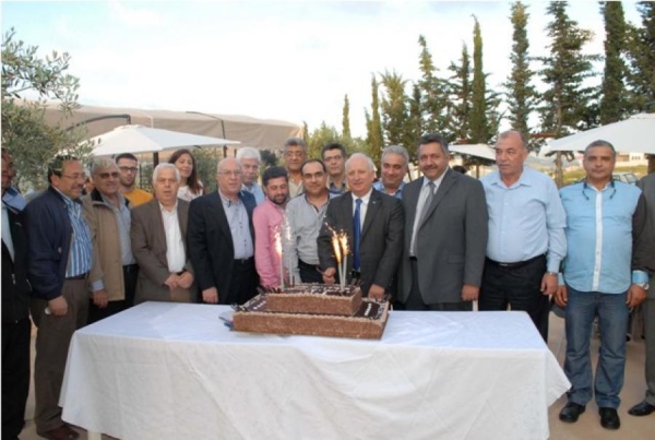 ثم قام حمود بمشاركة اعضاء المنسقية وجانب من المدعوين بقطع قالب حلوى بالمناسبة