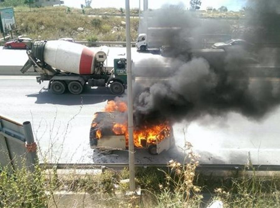 احتراق فان على طريق وادي الزينة , والعناية الالهيّة انقذت الركاب , حيث النيران ادة الى تدمير الفان.