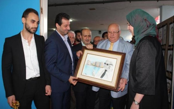 وبعد قص الأستاذ السعودي لشريط الإفتتاح، قدم الأستاذ أحمد دنان لوحة بروفايل للمهندس السعودي الذي شكره على البادرة. ثم جال السعودي والحضور في أرجاء المعرض الذي ضم رسومات وأشغالا يدوية .