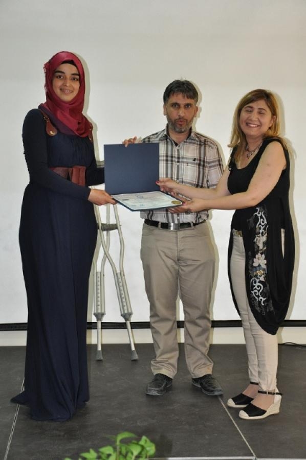 وتحدثت الطالبة دانا محمد باسم الخريجين منوهة بالدورات وعرضت تجربتها بعد التخرج وانخراطها في سوق العمل رغم اصابتها بسرطان العظم.